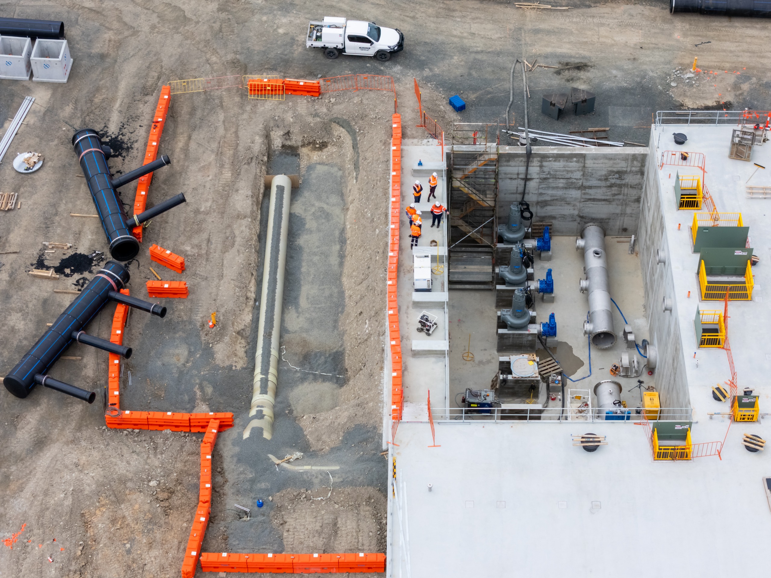 The future flows to these new storage tanks will be transferred via the New Sewer Pipeline we are currently building 40 metres under the estuary riverbed between our Margaret Street Pump Station and the Ti-Tree Bend Sewage Treatment Plant.